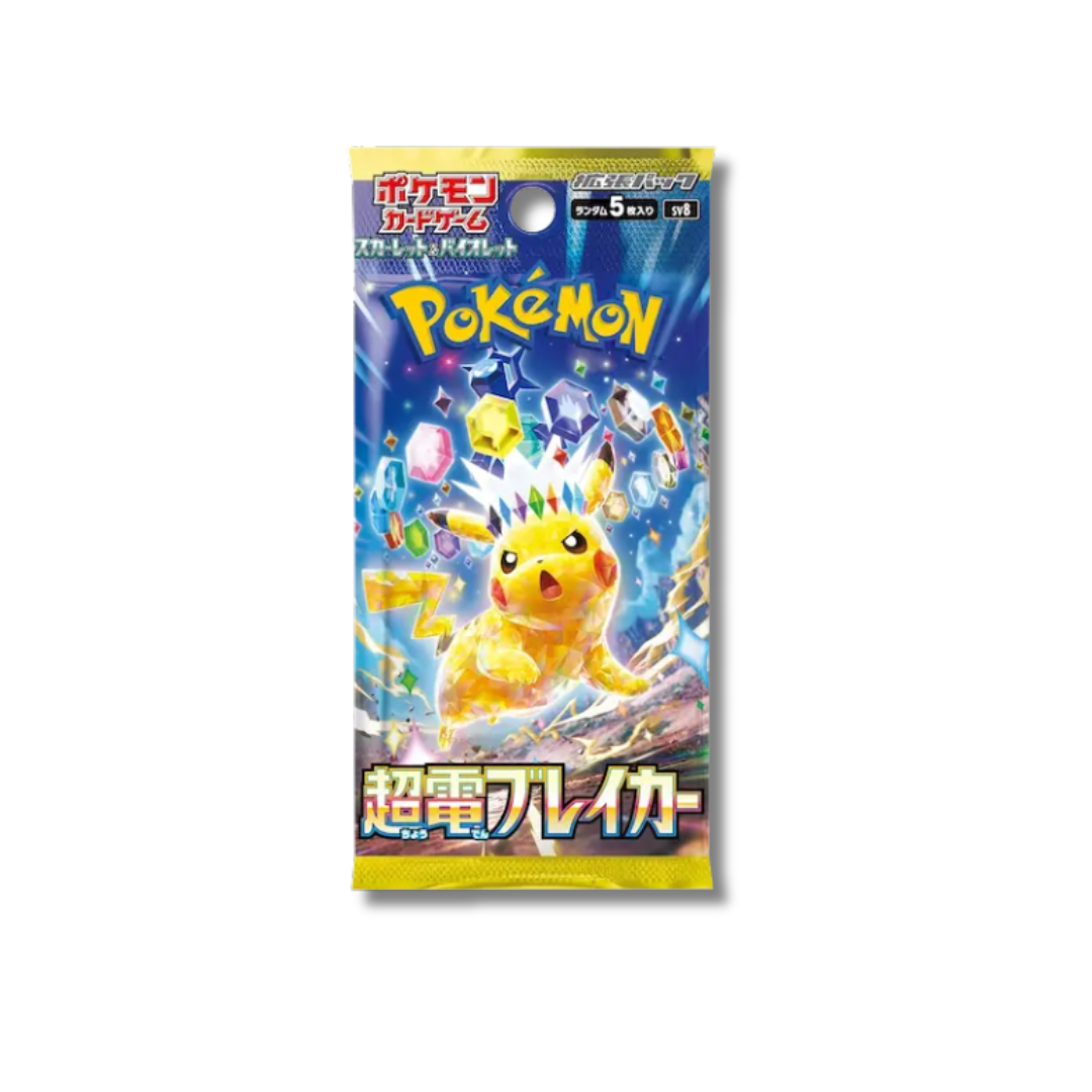 Un must per i veri collezionisti! Questo esclusivo pacchetto giapponese della leggendaria espansione Super Electric Breaker contiene artwork unici, carte vintage e il fascino originale delle edizioni giapponesi. Ogni bustina sigillata può contenere Pokémon art rare, carte olografiche rare e la magia degli anni d’oro del TCG.